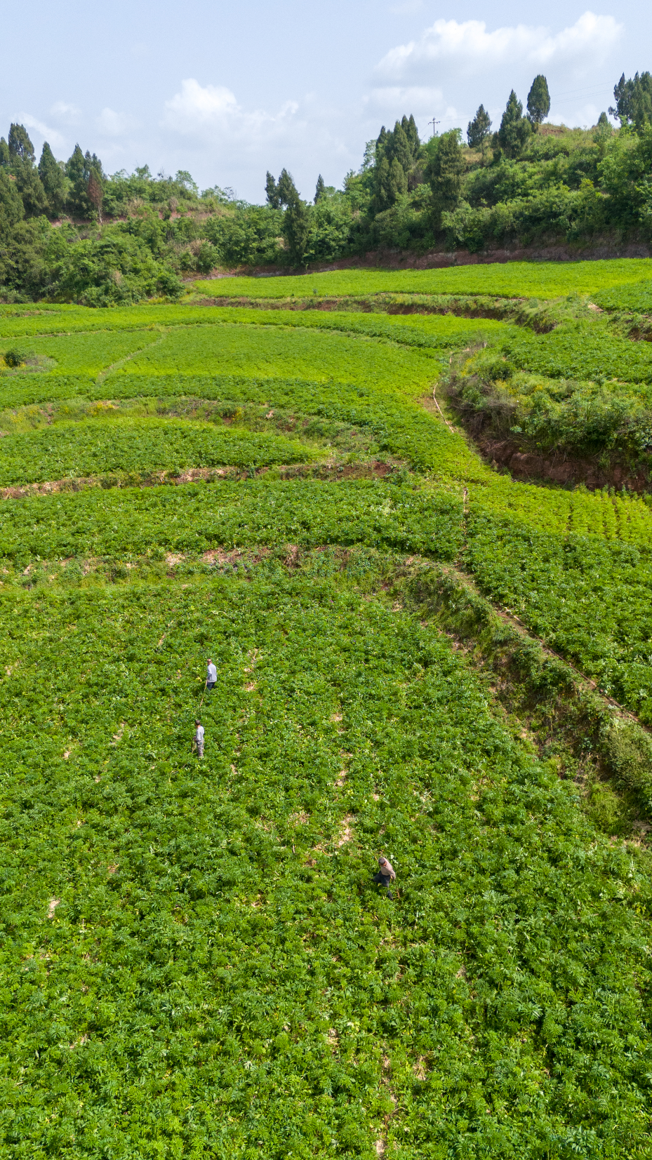 眼下正是川白芷田间除草、施肥管理时节。近日,在蓬溪县蓬南镇三翔村,村民正在绿油油的白芷田里施肥,确保白芷增产、农民增收。据悉,该村今年种植川白芷360余亩,预计白芷产量280余吨。
