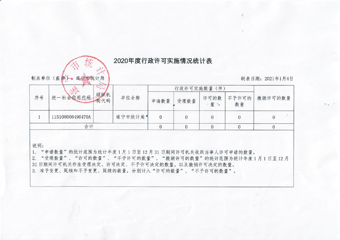 2020年度行政许可实施情况公示