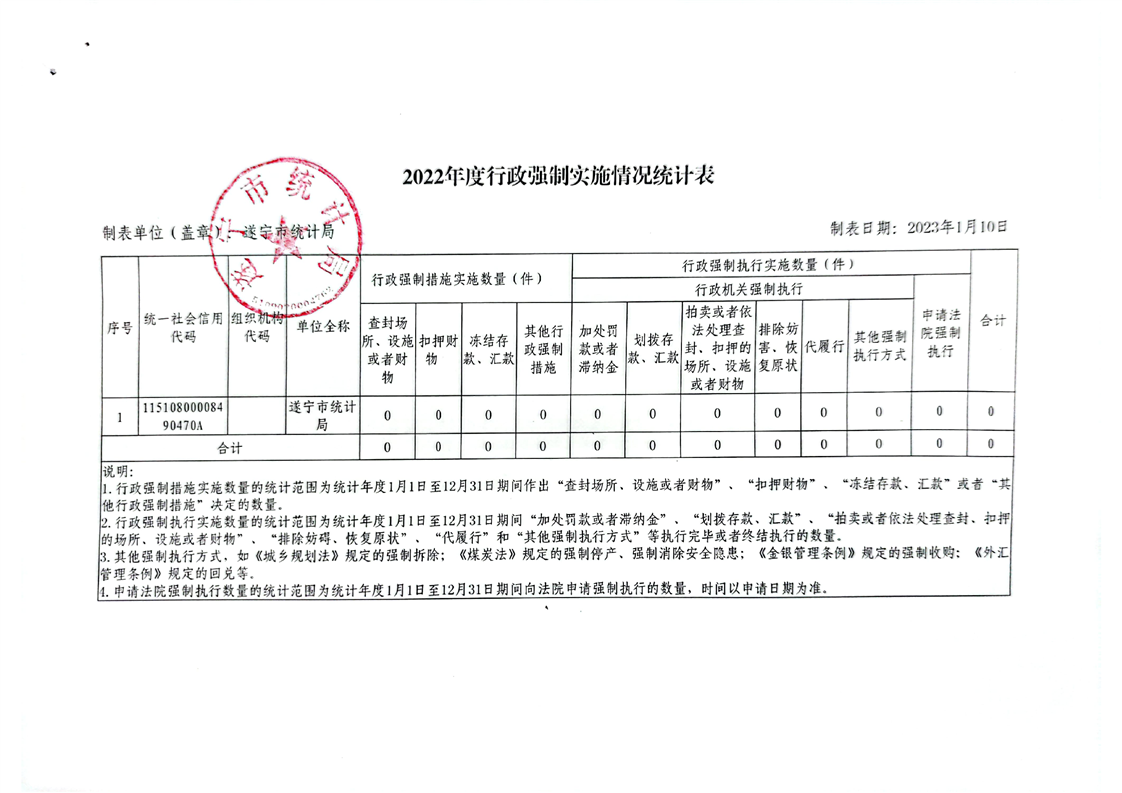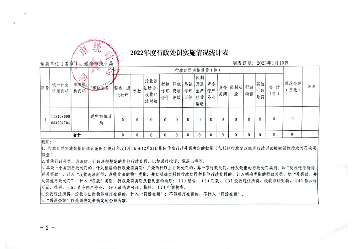 2022年行政许可、行政处罚、行政强制、行政检查实施情况统计表