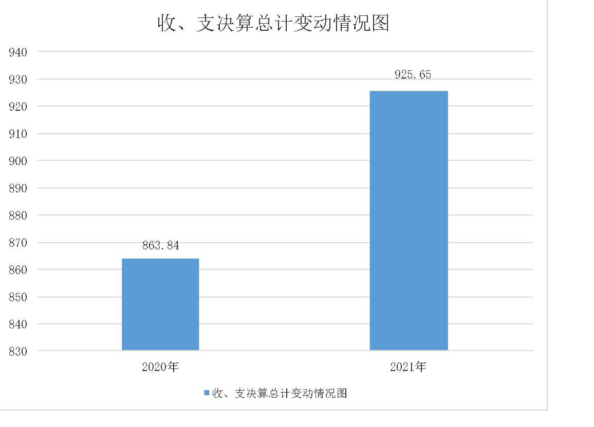 2021年度收、支总计925.65万元。与2020年相比,收、支总计各增加61.81万元,增长7.16%。主要变动原因是2021年度开展了全国第七次人口普查并对成果进行了分析研究及汇编出版。