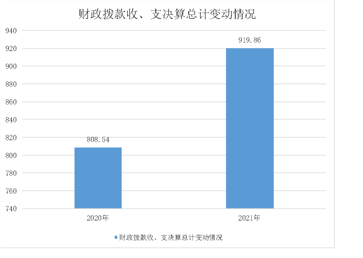 2021年财政拨款收、支总计919.86万元。与2020年相比,财政拨款收、支总计各增加111.32万元,增长13.77%。主要变动原因是2021年度开展了全国第七次人口普查并对成果进行了分析研究及汇编出版。