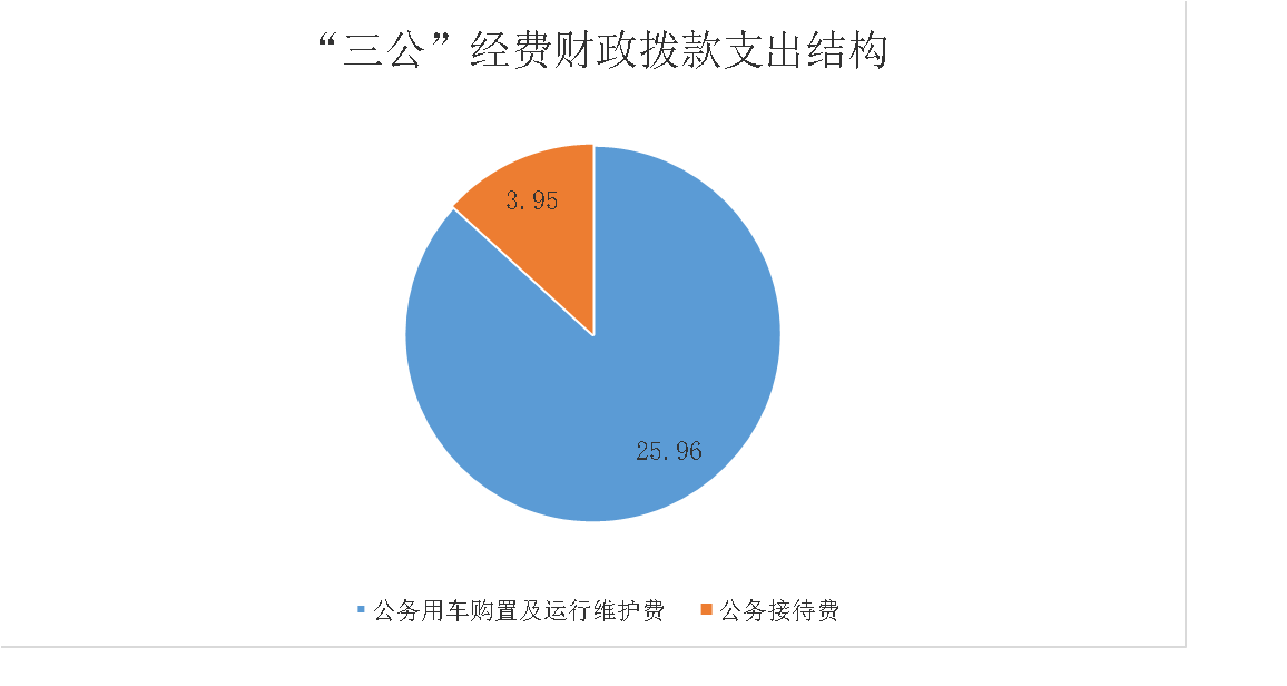 2021年“三公”经费财政拨款支出决算中,因公出国(境)费支出决算0万元,占0%;公务用车购置及运行维护费支出决算25.96万元,占86.79%;公务接待费支出决算3.95万元,占13.21%。具体情况如下:
